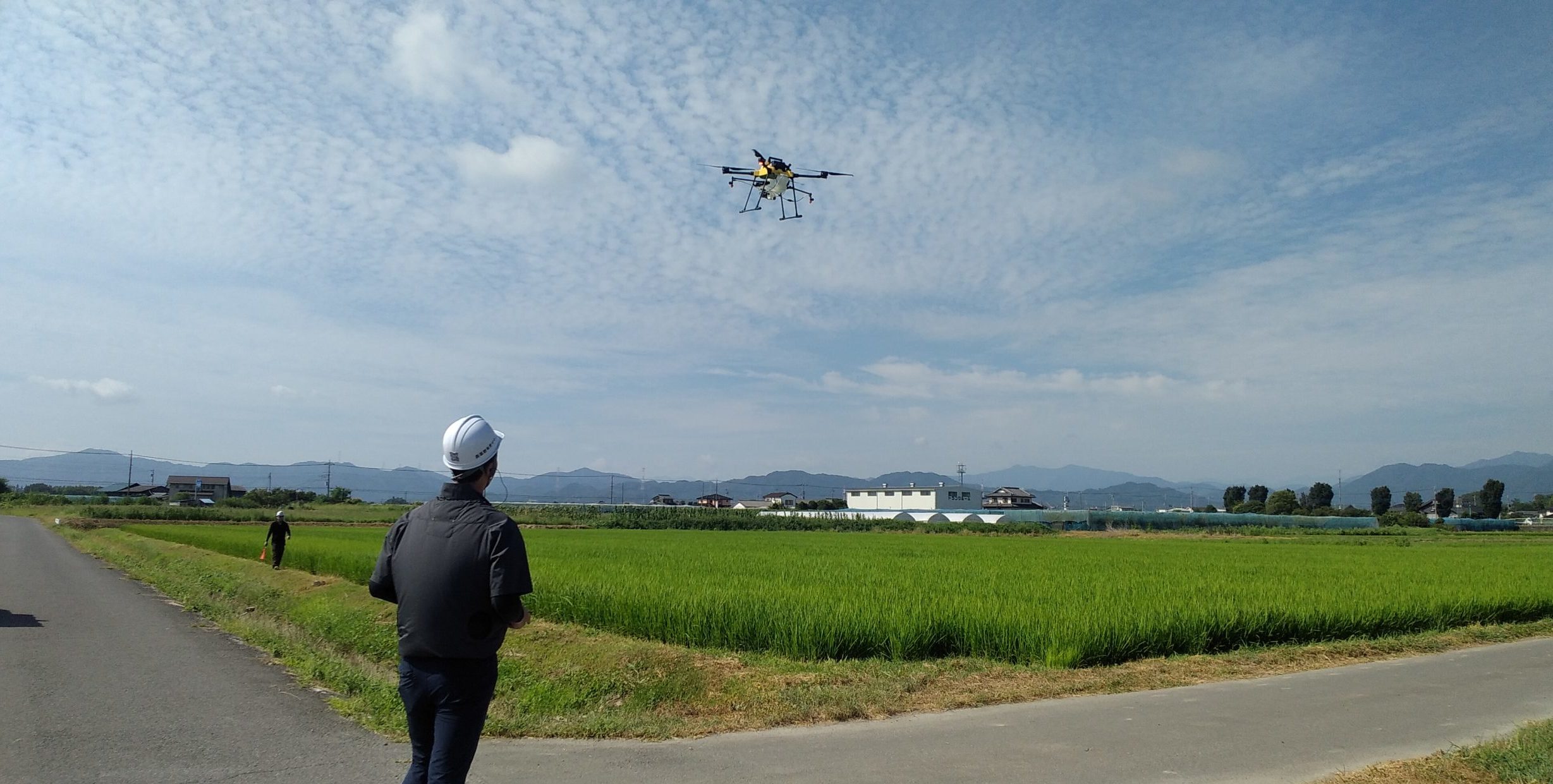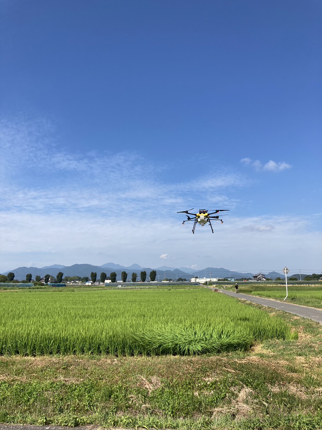 本日本庄市某所にてデモンストレーションを経て、事業的な農薬散布に完全移行いたしました。