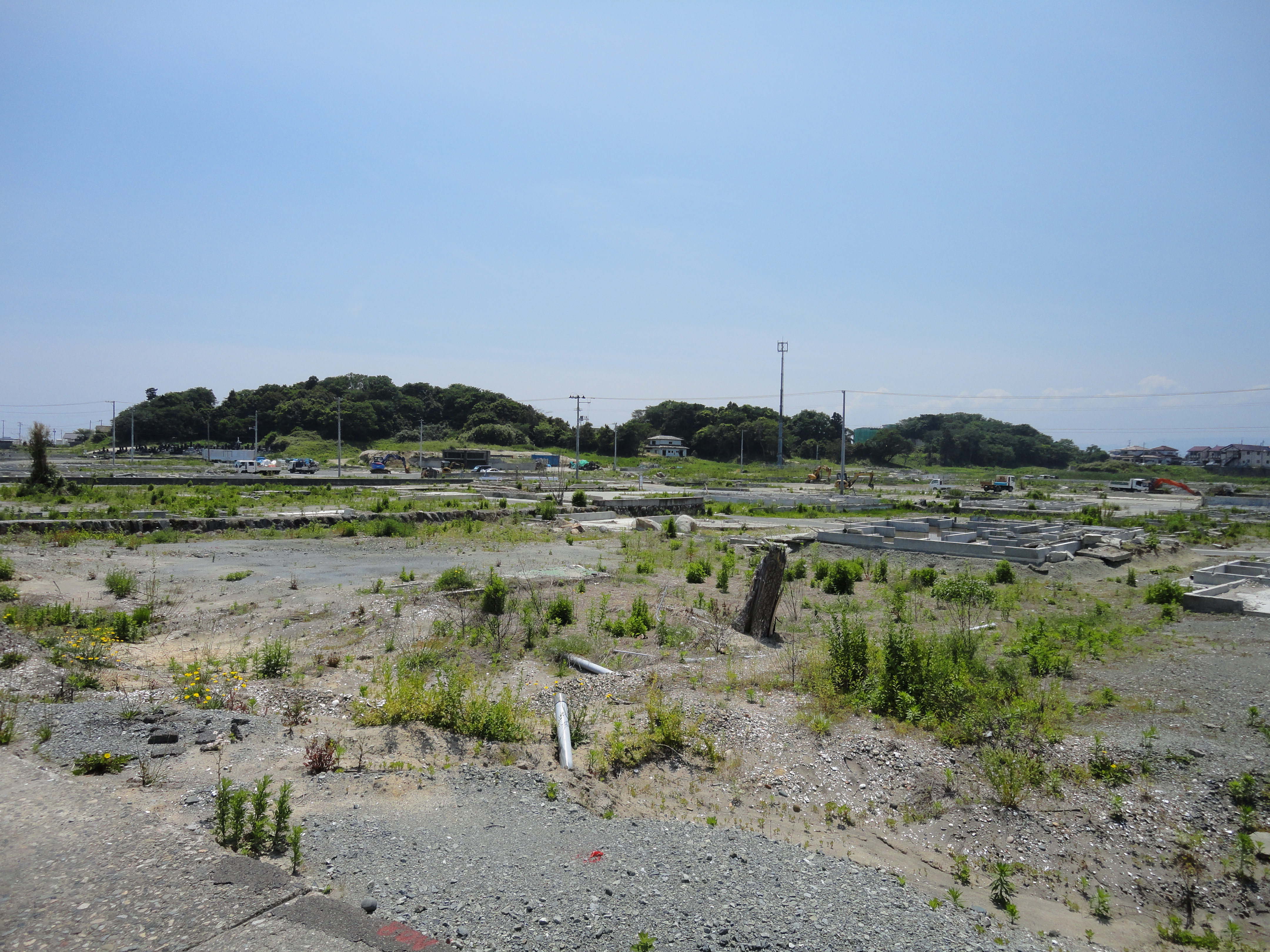 家や建物など基礎だけを残し流されてしまって、住宅街だったということがまったく感じられません。